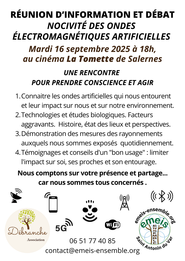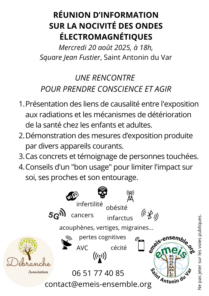 - Réunion d’information sur la nocivité des ondes électromagnétiques, Saint Antonin du Var.